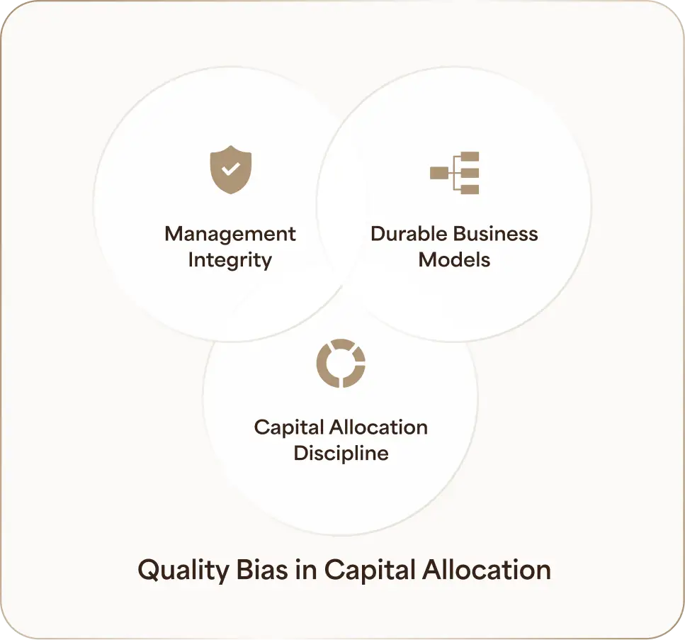 Focus on management integrity, prudent governance, and capital efficiency rather than short-term momentum.