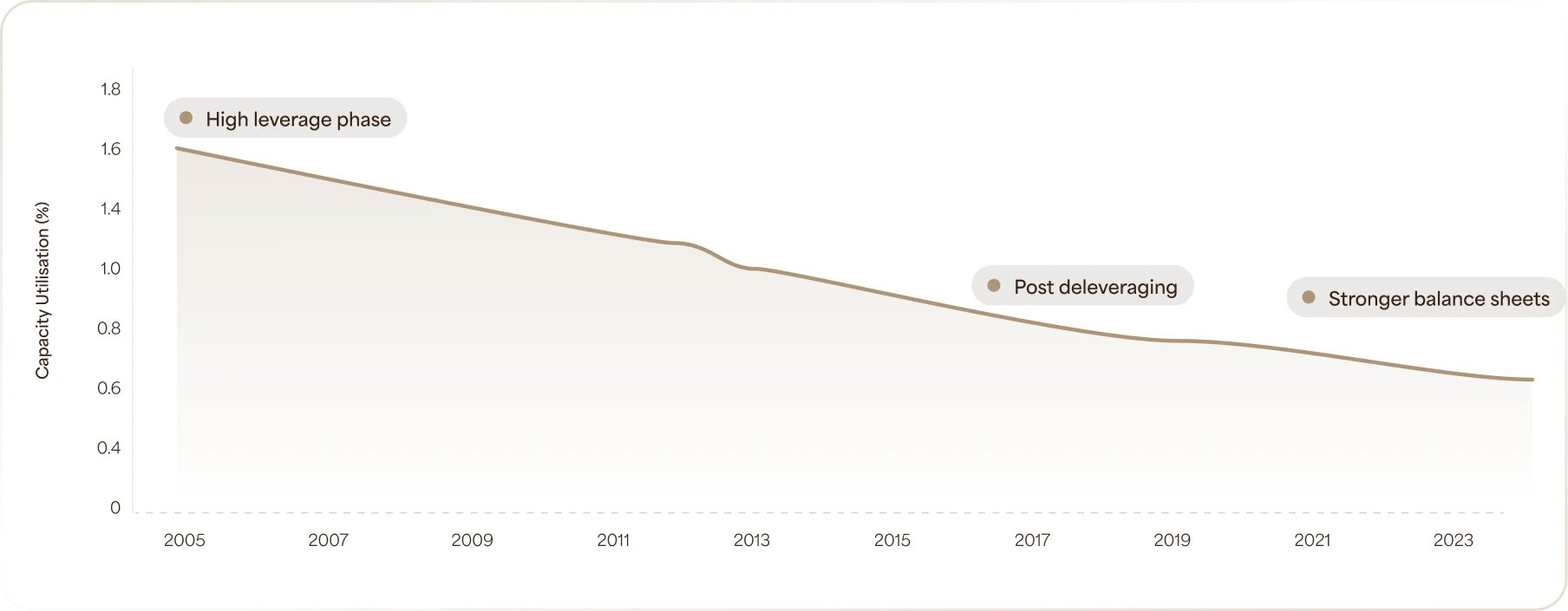 Deleveraged India Inc has enough headroom to increase leverage for funding capex. This sets the stage for a new leg of investment cycle.