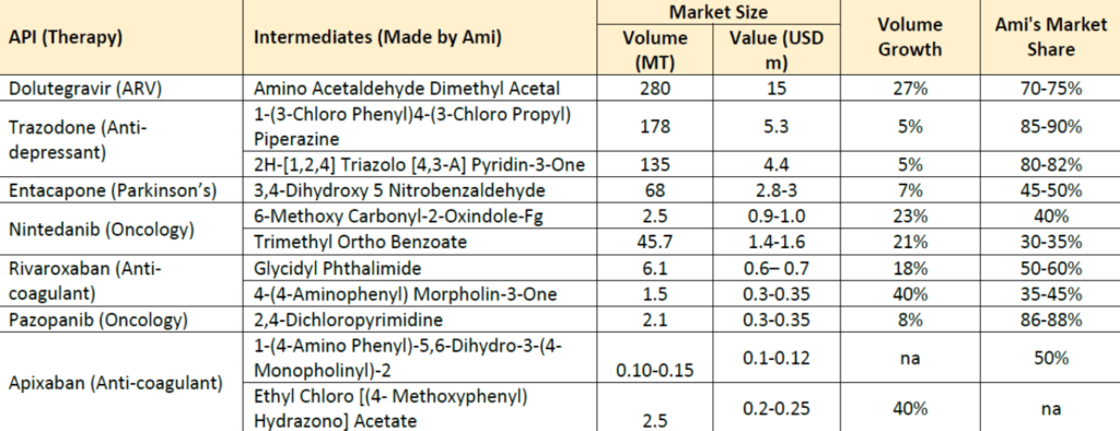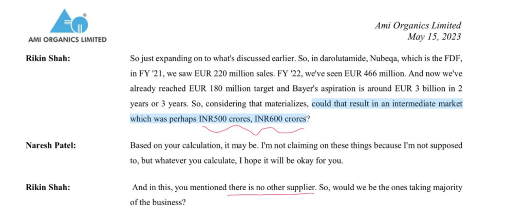 Beyond these factors our thesis anchored on the inflection point for Darolutamide – which is a breakthrough molecule in the prostate cancer space (innovated by Orion – Ami’s existing client for Entacapone). The molecule displayed hyper growth tendencies scaling from EUR 220 Mn to >460 Mn+ in 2022 – with guidance of >3Bn EUR by 2030. We anticipated this opportunity to be larger than Acutaas’s topline in FY23 (Rs 617 Cr).